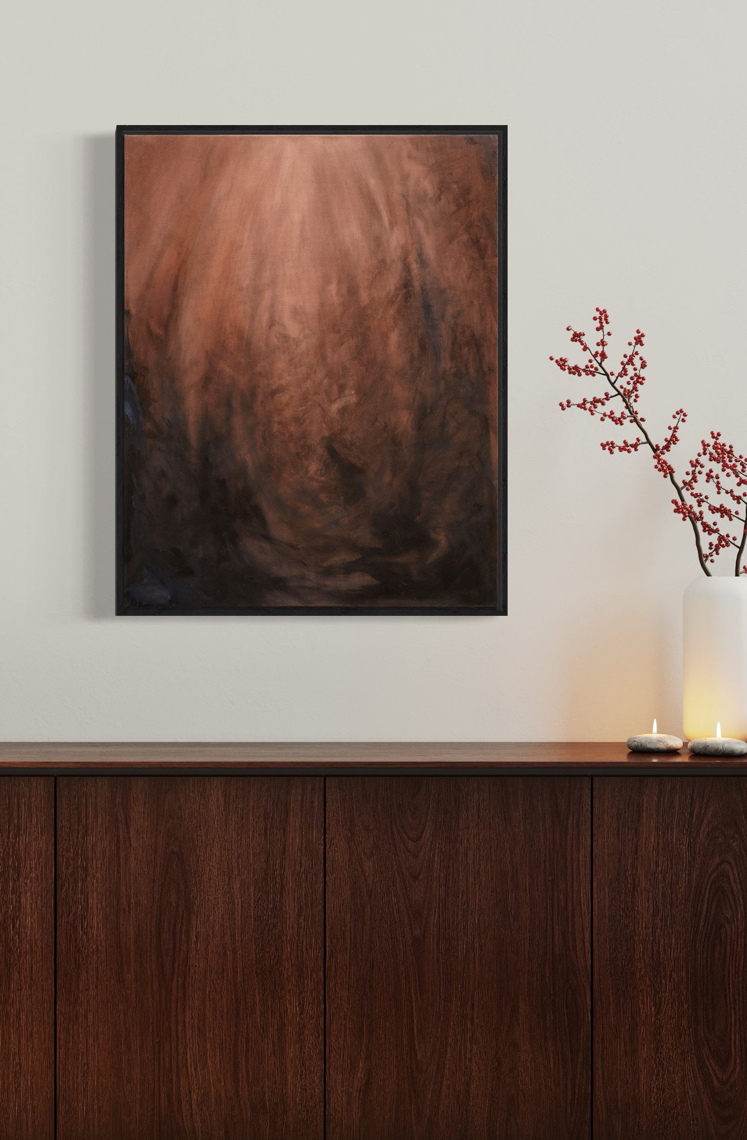 The 'Tension of Opposites Collection' is a series of original fine art paintings, created with hand-made earth pigments and seed oils. Rooted in sustainable art and abstract expressionism, these works explore the balance between peace and passion, light and shadow—offering a mindful refuge and soulful presence for your space.